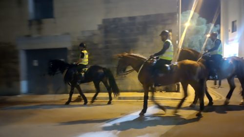 ポーランド人対策なのか、通常のサッカー試合対策なのか分かりませんが、馬に乗った警備隊の姿も。マルタで初めて見ました。